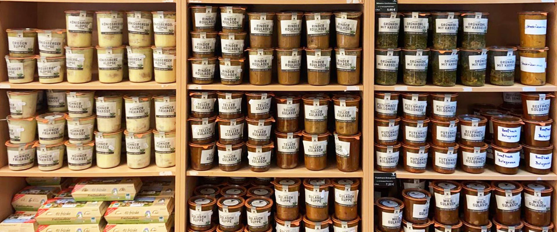 Besondere Beliebtheit erfahren unsere traditionellen Gerichte im Original-Weck-Glas. Wir fertigen Sie nach alten Familienrezepten mit dem guten alten Geschmack. In jedem Glas sind 1 oder 2 Portionen (groß oder klein) enthalten. Wir legen Wert auf beste Zutaten. Das Fleisch stammt ausschließlich von Tieren aus unserer Region. Die Weck-Gläser sind ohne Kühlung haltbar. Der Inhalt sollte erwärmt und danach genossen werden. Sie erhalten die verschieden Gerichte in unserem Ladengeschäft in Lübeck.